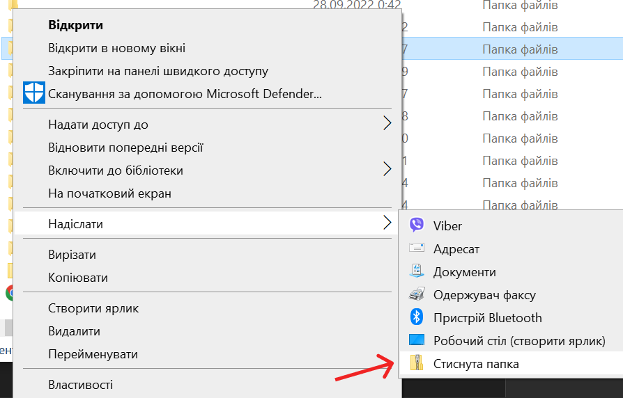 Існує декілька методів створення архіву, для яких не потрібно окремо завантажувати спеціальні програми на твій комп’ютер. Наприклад, якщо ти використовуєш комп’ютер з версією операційної системи Windows 10 та вище, твій пристрій вже має вбудовану функцію архівування файлів. Для того, аби створити архів, необхідно знайти та вибрати необхідні файли у «Файловому провіднику» та клікнути по ним правою кнопкою миші. Далі у меню треба навести курсор на «Надіслати» та натиснути на «Стиснуту папку». В якості назви архіву комп’ютер автоматично використає назву одного з файлів.