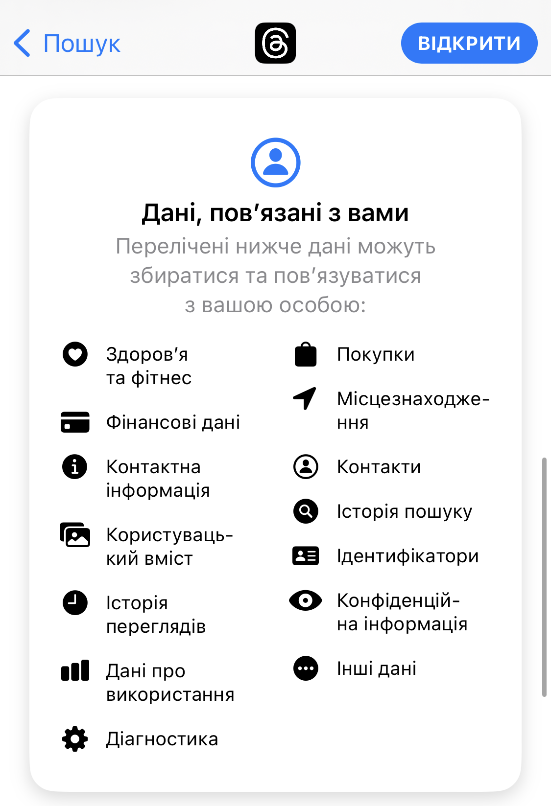 Варто зазначити, що в країнах ЄС поки що не відбувся реліз Threads якраз через велику кількість конфіденційної інформації, яку збирає додаток, та невідповідність Закону про цифрові ринки (DMA).